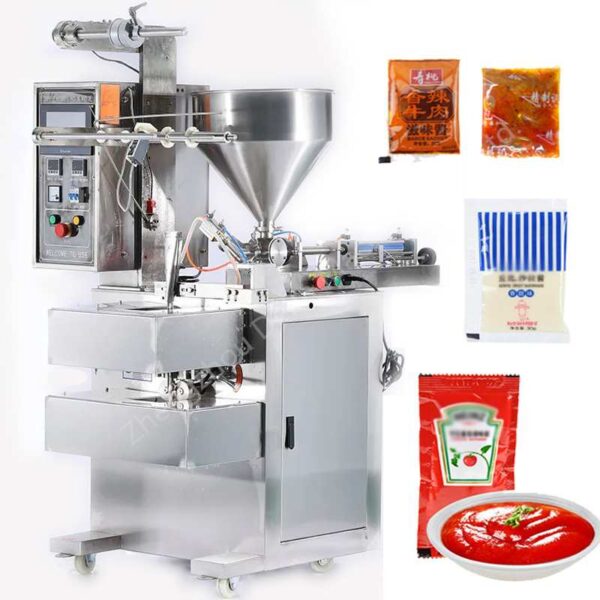This Ketchup Packing Machine Shampoo Chocolate Chili Paste Sachet is Designed for fully automatic packaging of a wide range of liquid and paste products, such as shampoo, face creams, ketchup, , honey, chili oil, skin toners, oral liquids,Tomato paste,stick Chocolate paste, Chili paste,Dates Paste and more.